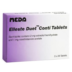 Take 1 tablet every day with a glass of water. You can take Elleste Duet at any time of day, just make sure you take every tablet at around the same time each day to ensure a steady supply of hormones. Unlike Elleste Duet, all Elleste Duet Conti tablets contain the same dosage. Simply follow the order shown on the strip and start the next strip without a break once finished.