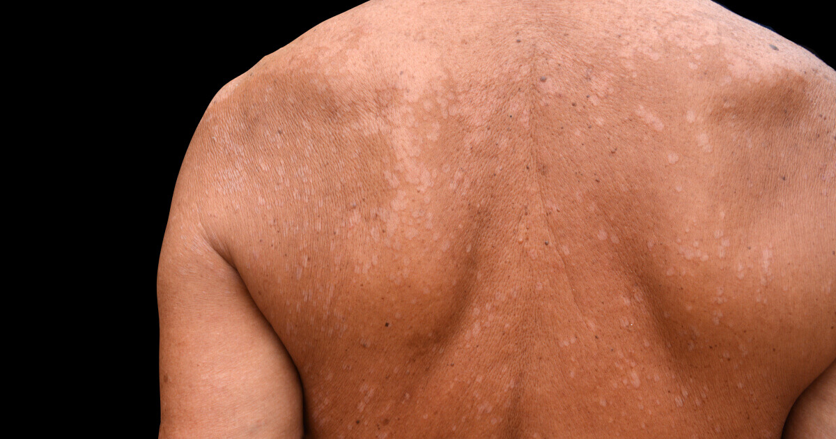 What it is: This is a yeast infection causing discolouration of the skin. It is more common in hot, humid climates and affects people who sweat heavily.