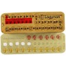 Triphasic contraceptives use three different doses of pills in each pack, so that the dosage of hormones can rise and fall as needed throughout your cycle. The colours are ochre, light brown and white to be taken in the correct order.