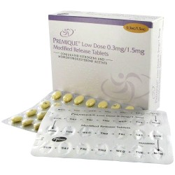 Premique is a hormonal replacement therapy (HRT) taken in the form of a tablet. It is available in the dosage of 300mcg / 1.5mg. It's a period-free HRT treatment meaning that you don't have a monthly bleed, but contains two active ingredients, namely conjugated oestrogens and progestogen, making it suitable for women who have not had a hysterectomy. It helps to replace the depleted oestrogen levels in the body, alleviating problematic symptoms associated with the menopause and is available in this lower dosage suitable for women who are prone to side effects.